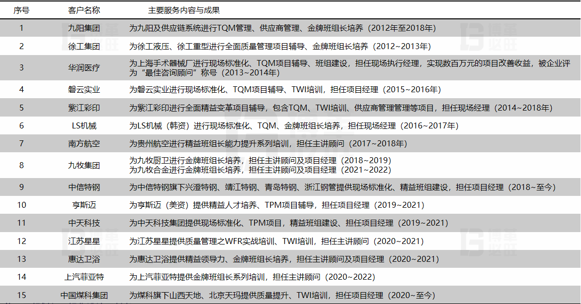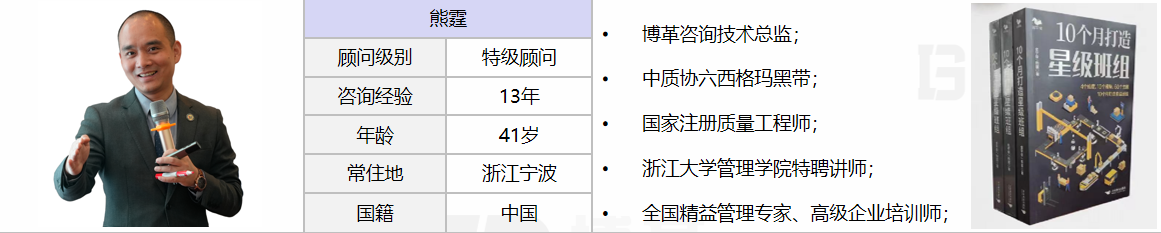 實戰經驗:結合豐田、三星、海爾等班組建設經驗,為企業量身訂制金牌班組管理系統,從班組的基礎/現場/效率/質量/設備管理等維度系統提升班組管理水平,同時培養精益班組管理人才超過12000人次;并有效將培訓轉化為企業績效,為企業成功輔導的質量、效率、六源、成本、流程、IE改善項目等超過1000個,使產品總成本降低30%、制造周期縮短30%、生產效率提升35%、庫存降低35%、產品缺陷降低30%、物料齊套率提升50%,帶來的直接財務收益數千萬。