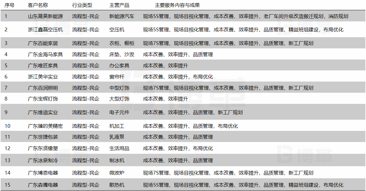 某電器行業:單班產量提升35%,人員低減20%。 熟悉行業:電子與半導體行業、家電與電氣行業、家居、裝備與機械制造業、新能源汽車;