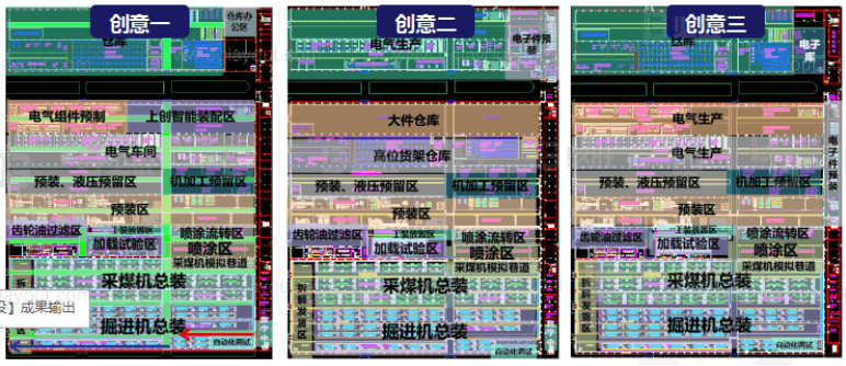 前期布局整體規(guī)劃過程中,共提供3種布局創(chuàng)意,通過多次溝通調(diào)整,確定出一版最適合創(chuàng)力發(fā)展的方案。