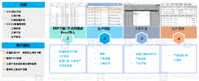 計劃管理數字化:及時、準時的獲取生產計劃,依據交期、物料、生產能力等實現生產排配,管控工單下發及簽收