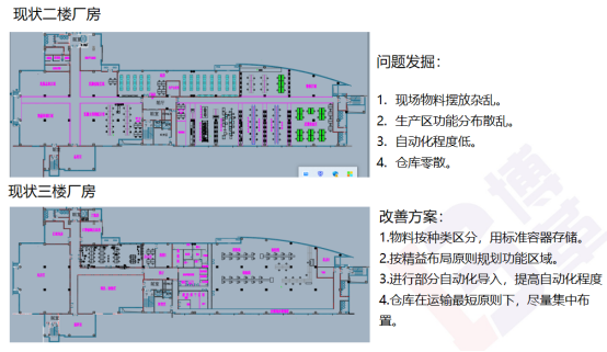 根據現狀調查和分析,博革咨詢認為,先合理規劃各樓層功能,再打造連續流的生產方式,降低成本金額,核心工作是要縮短生產周期、降低中間WIP,提高生產效率,改善現場環境。