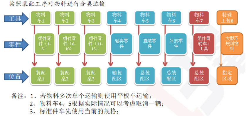 ●搬運浪費:物料運輸過程中,送料員用平板車,需多批次運輸,且需將物料搬運至地面;裝配員再將物料搬運至裝配區(qū);