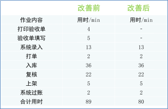 【注:入庫(kù)工時(shí)=系統(tǒng)操作+打印單據(jù)+揀配+復(fù)核+上架+過(guò)賬】