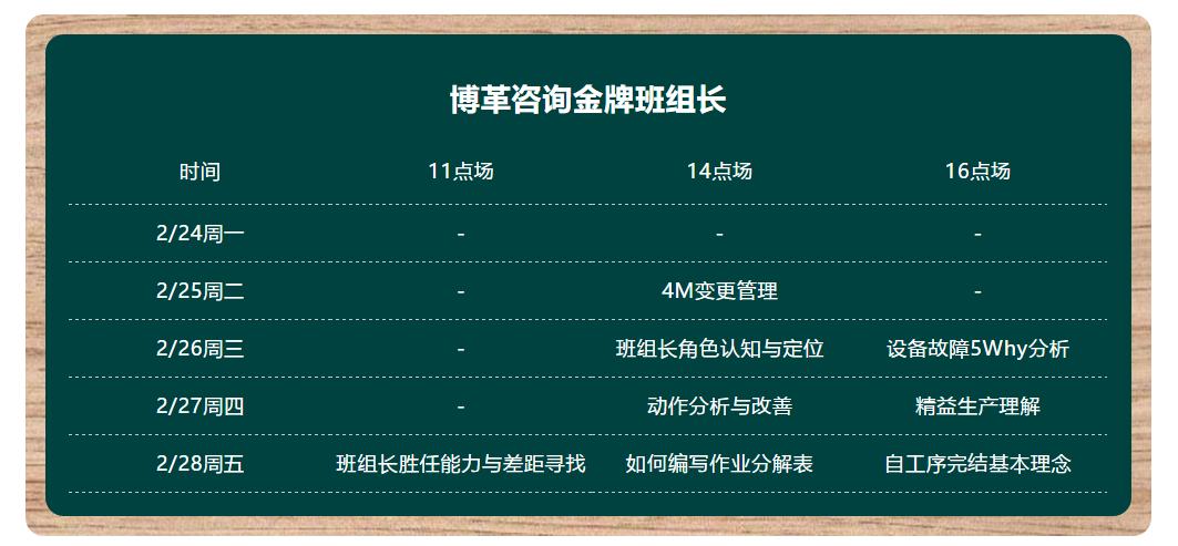 博革咨詢針對當前現狀,在疫情防控期將持續開設線上公益課程【班組建設班組培訓系列、精益生產系列、六西格瑪系列等多方面、多層次的課程】,幫助企業管理者以及各個層次的管理操作人員都能進行專業學習,提升自我,更好地做好企業管理工作!