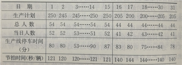 因為汽車的需求季節(jié)性變化大,所以月與月之間生產(chǎn)量的波動是不可避免的。但是,在一個月當(dāng)中,能夠消除天與天之間生產(chǎn)量的波動。例如,批量生產(chǎn)的車種花冠的整體生產(chǎn)計劃,首先要按照那個月的預(yù)測需求量制定以月為單位的生產(chǎn)數(shù)量計劃。通過簡單地用這個月的勞動天數(shù)去除月生產(chǎn)數(shù)量,求出每天的生產(chǎn)輛數(shù),就可以計劃出每天定量生產(chǎn)的平均輛數(shù),這就是總量均衡在這個總量均衡的概念中,不考慮花冠有多樣的規(guī)格種類,只考慮從整體上看花冠這一大宗車種每天保持的平均生產(chǎn)量。