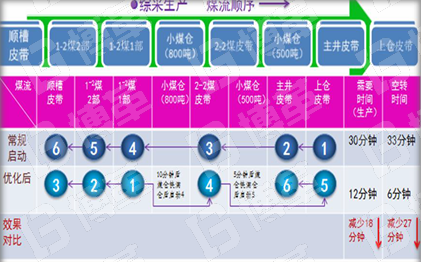 ?優(yōu)化主運輸系統(tǒng)“開、停”順序,縮短空轉待機時間,通過優(yōu)化每天可以增加18分鐘的運轉時間,減少27分鐘的空轉時間。